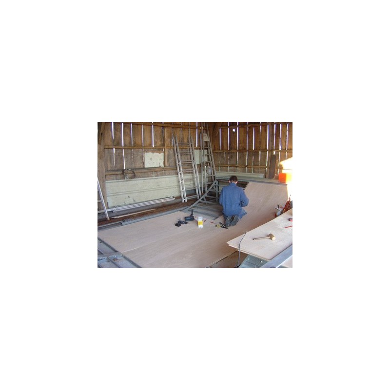 Pour réaliser cette micro, nous avons eu la chance de récupérer des anciens modules en acier galvanisé. Ensuite on a fait le plat en bois, on a fixé tout ensemble. Les plates forme sont indépendantes de la rampe, on les a fabriqué avec des barres récupérée sur un autre projet, puis soudées entre elles. On a acheté du bois : 11 plaques de contre-plaqué de 2500x1250 en 10mm et on a replaqué tout ça avec des rivets, là a commencé les soucis car fixer 2 couches de 10mm (en quinconces) sur une surface en acier, on a du récupérer les trous d''origine pour consolider... On a placé de la laine de verre en dessous pour étouffer un peu le bruit. Avec beaucoup de courage et de patience on arrive a faire quelque chose qui ressemble a ce que l''on voulait, même mieux encore ! A vous de jouer maintenant !