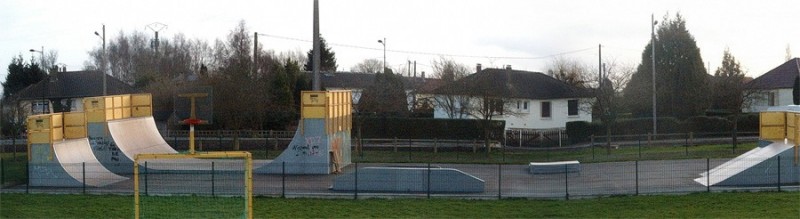Une rampe, un quarter, une fun box, un plan incliné, des curbs.