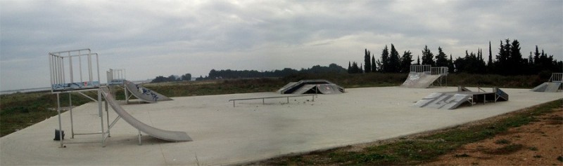 Skatepark composé de 3 funbox, 2 très grands plan incliné, 3 quarters assez grand. Très bon skatepark. Parfait pour apprendre et perfectionner son style. Une barre de slide. Amenez une balayette au cas ou il y aurai des bouts de verres.